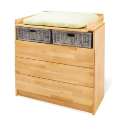 - Meuble à langer avec table à langer amovible, 3 tiroirs, 1 compartiment ouvert, mécanisme de fermeture automatique amortie