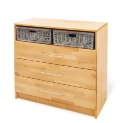 - Contenu de la livraison : ensemble de chambre de bébé de 3 éléments, contient 2 planches modulables pour former un lit enfant, sommier à lattes et kit d’entretien, sans décoration, matelas, paniers en osier, table enfant ni parure de lit