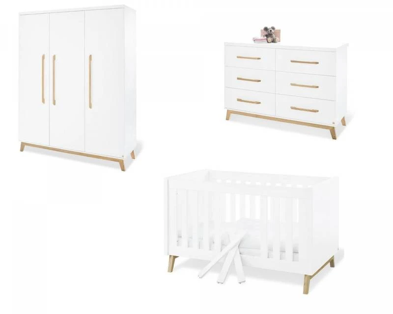 3 pièces : lit de bébé évolutif, commode à langer extra large et armoire grande - Nombre de pièces inclues : 3 éléments