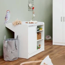 - Meuble Ă langer 1 porte avec 3 compartiments ouverts, 3 tablettes et plan Ă langer amovible