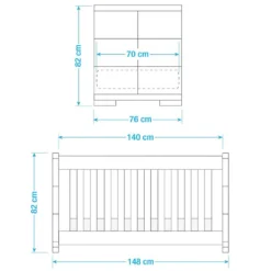 2 piÚces : lit de bébé évolutif et commode à langer extra large - Nombre de paquets : 8