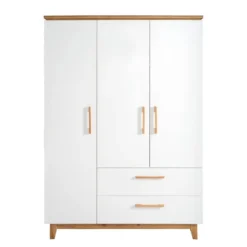 - Contenu de la livraison : Armoire 3 portes, 3 portes, 2 tiroirs Ă©troits, 1 tringle Ă vĂȘtements, 5 Ă©tagĂšres, HxLxP : 200×134,5×55 cm