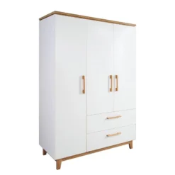 - Contenu de la livraison : Armoire 3 portes, 3 portes, 2 tiroirs Ă©troits, 1 tringle Ă vĂȘtements, 5 Ă©tagĂšres, HxLxP : 200×134,5×55 cm