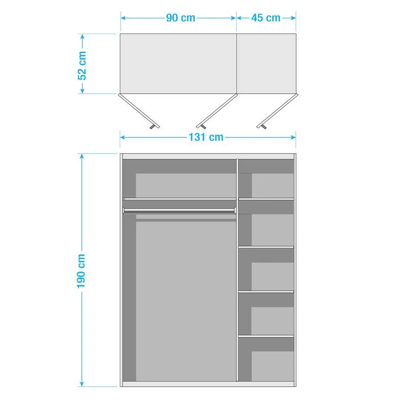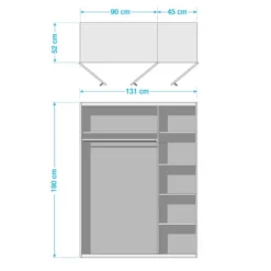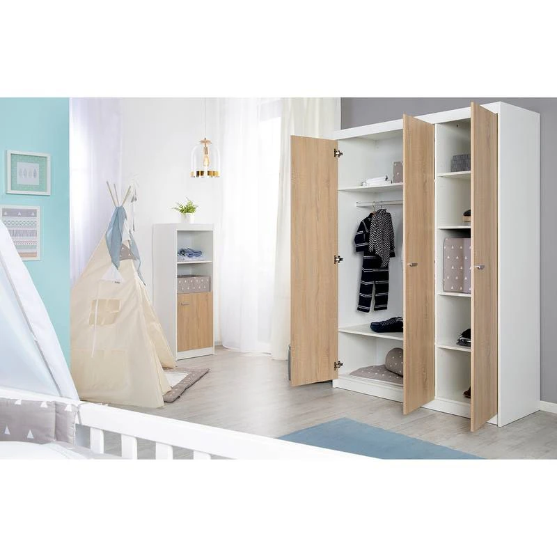 - Contenu de la livraison : Armoire 3 portes, 3 portes, 1 tringle Ă vĂȘtements, 6 Ă©tagĂšres, HxLxP : 190x131x52cm