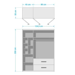 - Contenu de la livraison : Armoire 3 portes, 3 portes, 1 tiroir, 1 tringle Ă vĂȘtements, 5 Ă©tagĂšres, avec Ă©tagĂšre intĂ©grĂ©e, HxLxP : 200×134,5×55 cm