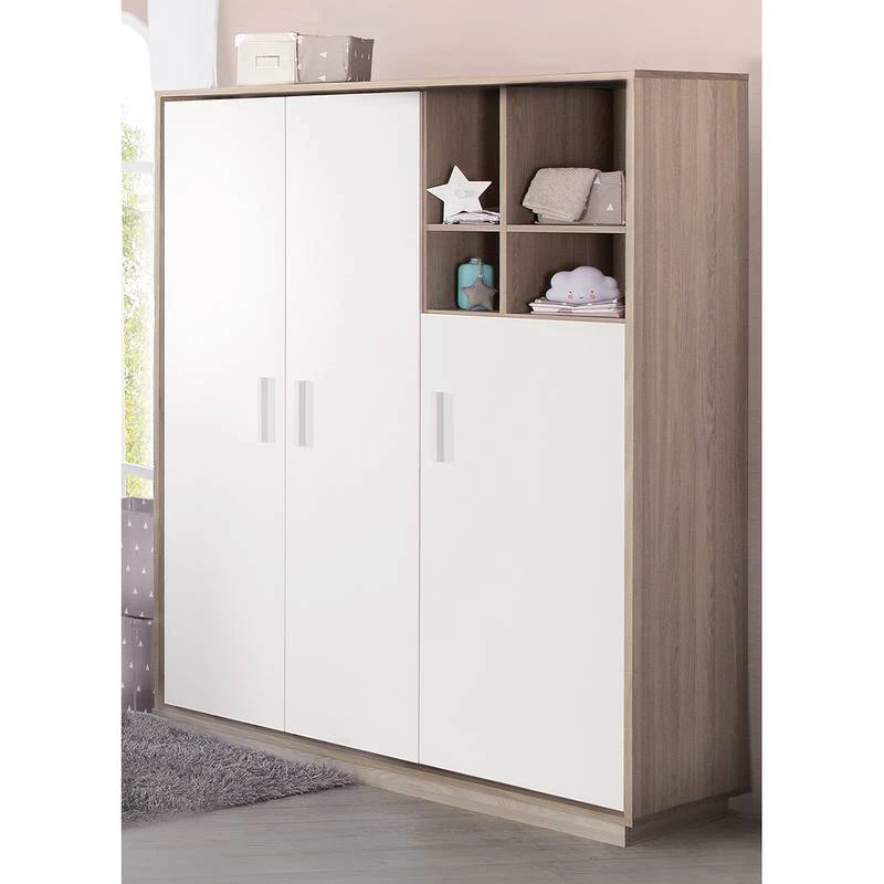 - Contenu de la livraison : Lit évolutif 70×140 cm, commode à langer, armoire 3 portes