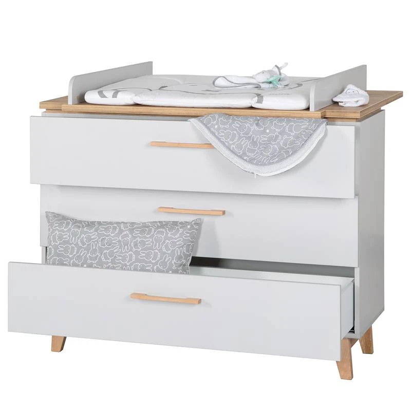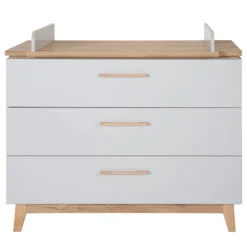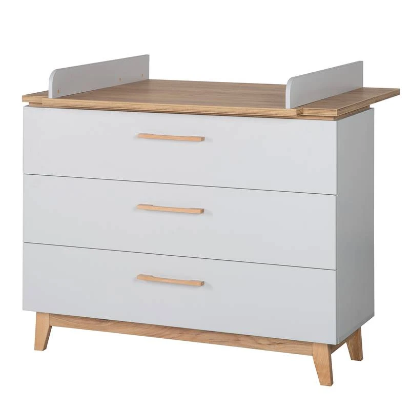 - Poignées : hêtre massif, plateau à langer : panneau aggloméré mélaminé