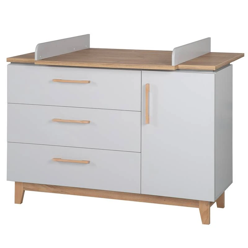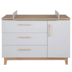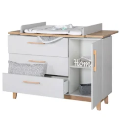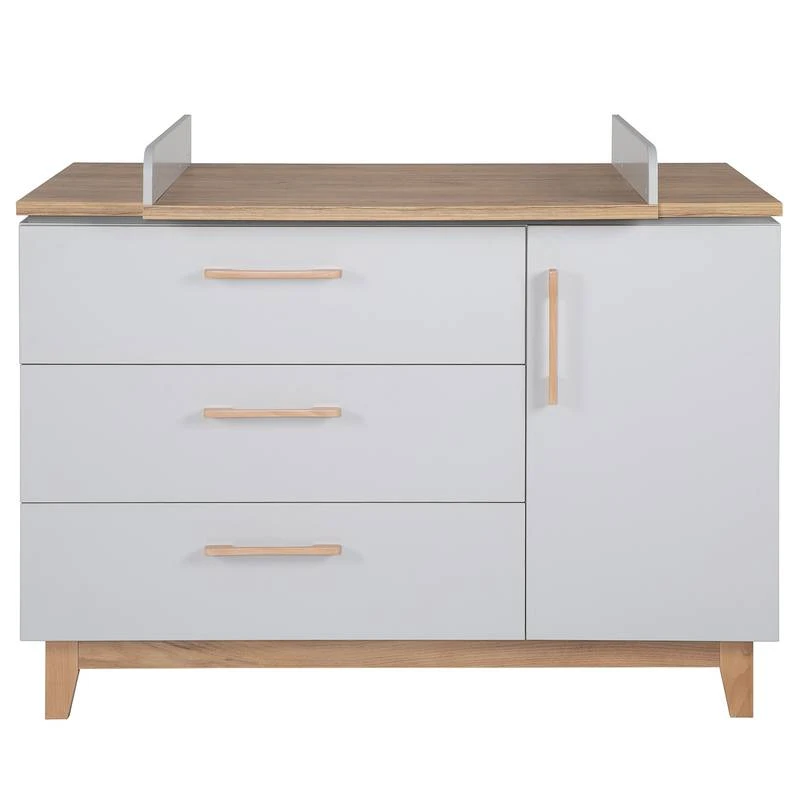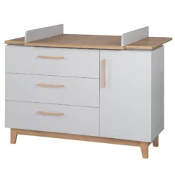 - Barreaux : hêtre massif, commode à langer Corps : panneau aggloméré mélaminé