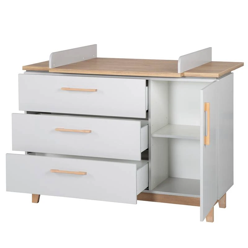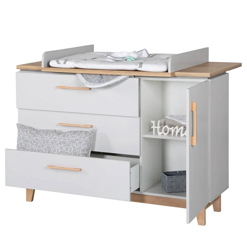 - Poignées : hêtre massif, plan à langer : panneau aggloméré mélaminé Armoire à vêtements : Corps : panneau aggloméré mélaminé