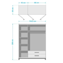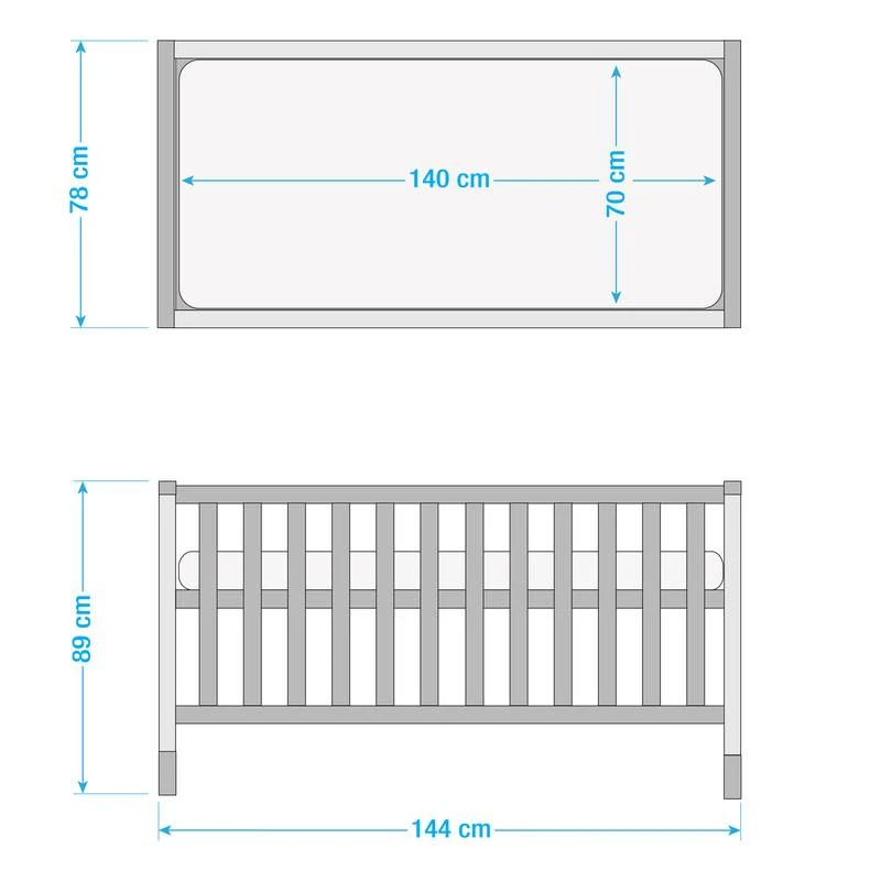 - Autres dimensions : Lit enfant évolutif : 89x144x76 ; commode à langer : 104×134 ; armoire : 200 x134,5×55 (HxLxP en cm)