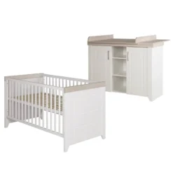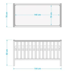 - Autres dimensions : Lit enfant évolutif : 82x144x76 ; commode à langer : 98x120x75 (HxLxP en cm)
