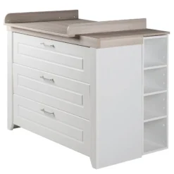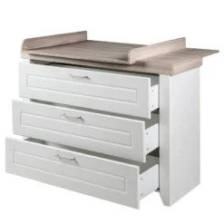 - Contenu de la livraison : large commode à langer avec plateau à langer, 3 tiroirs, HxL: 98x120cm, profondeur avec/sans plateau à langer 75/42cm, hauteur du plateau à langer : 90 cm, tiroir supérieur à sortie totale