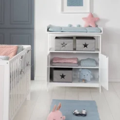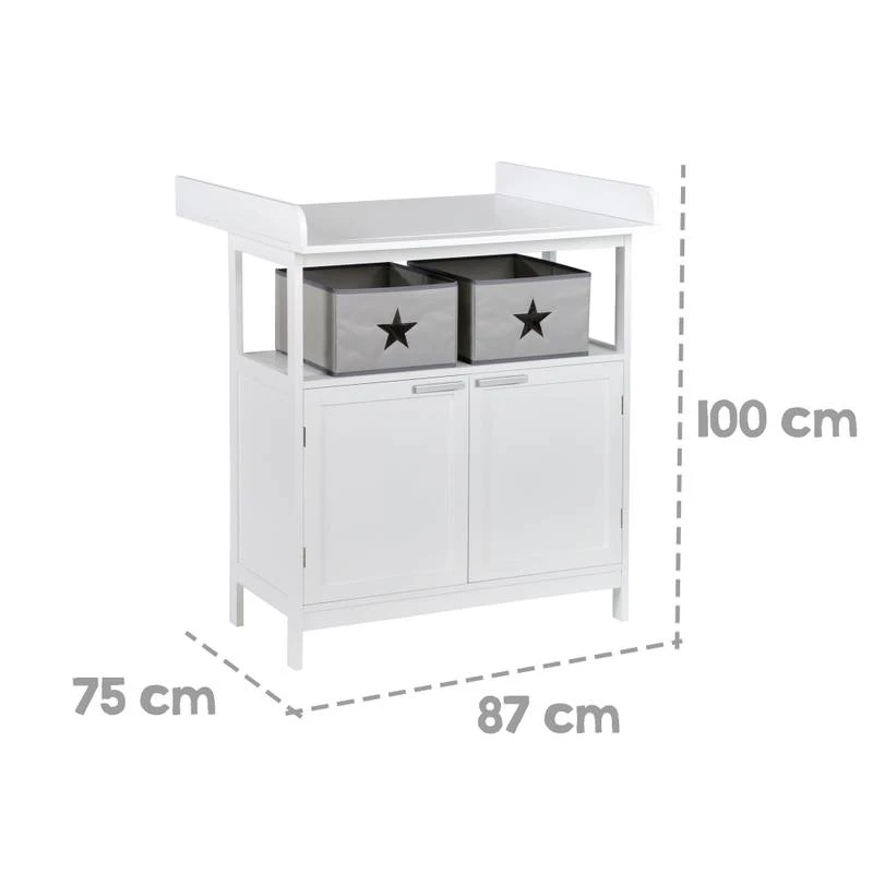 - Autres caractĂ©ristiques : Commode Ă langer «Hamburg» en taupe, avec plan Ă langer, 2 portes, compartiment ouvert, HxL : 100×87 cm, profondeur avec/sans plan Ă langer : 75/40 cm, hauteur du plan Ă langer 92 cm, avec 2 boĂźtes Canvas et fixations murales