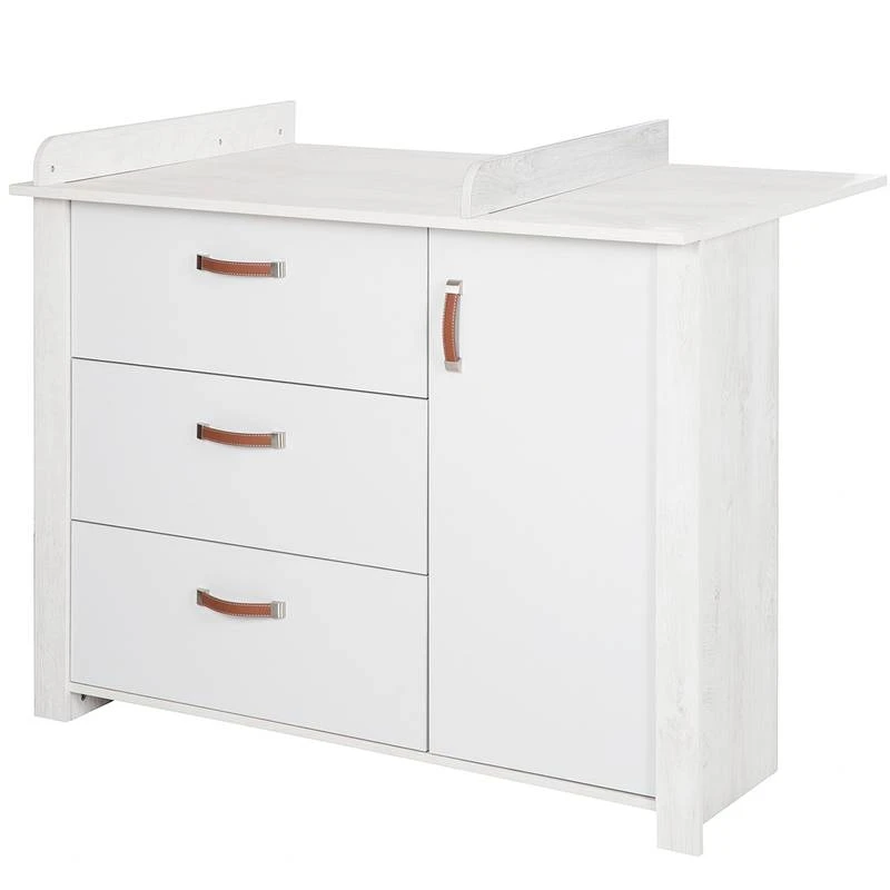 - Contenu de la livraison : Large commode Ă langer avec plateau Ă langer, 3 tiroirs, 1 porte, H x L : 98,5 x 126 cm, profondeur avec/sans plateau Ă langer 75/39,5cm, hauteur du plateau Ă langer : 90,5 cm