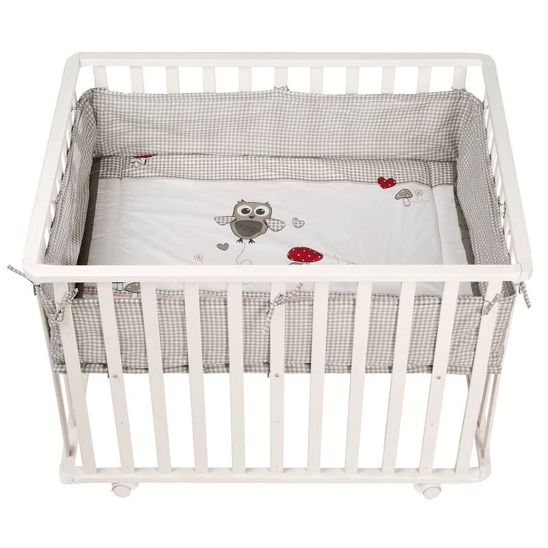- Surface de couchage : MDF / Cadre : bois lamellé / Barrières latérales : contreplaqué, tissu : 65 % polyester, 35 % coton / Rembourrage : polyester intissé, motif imprimé