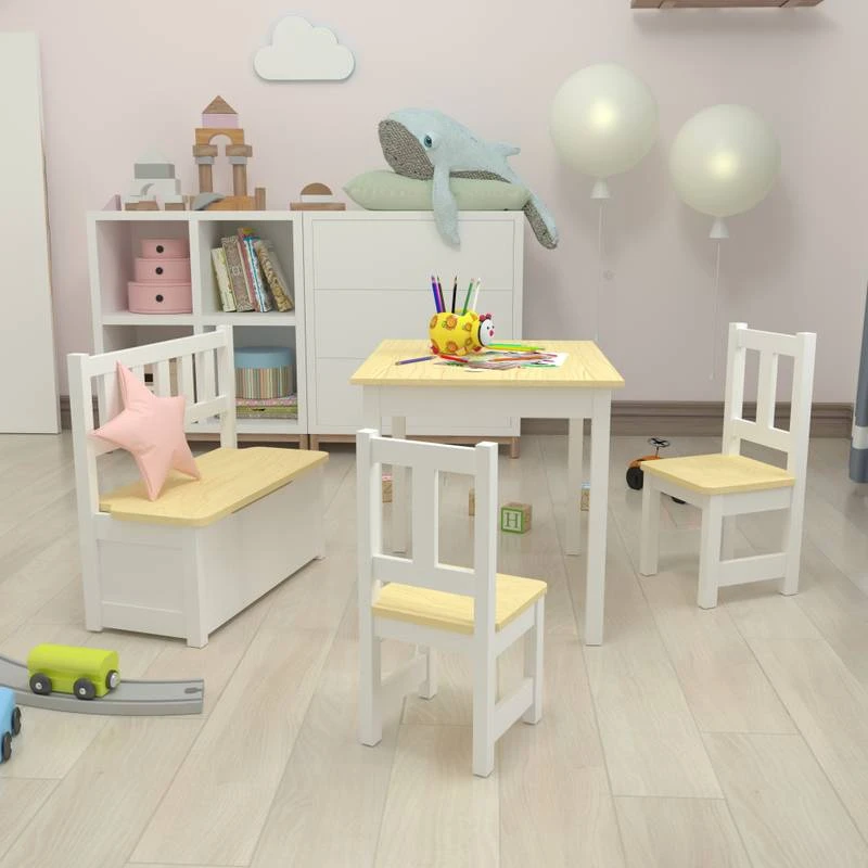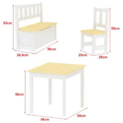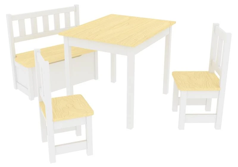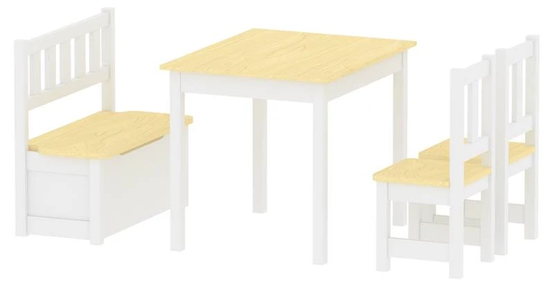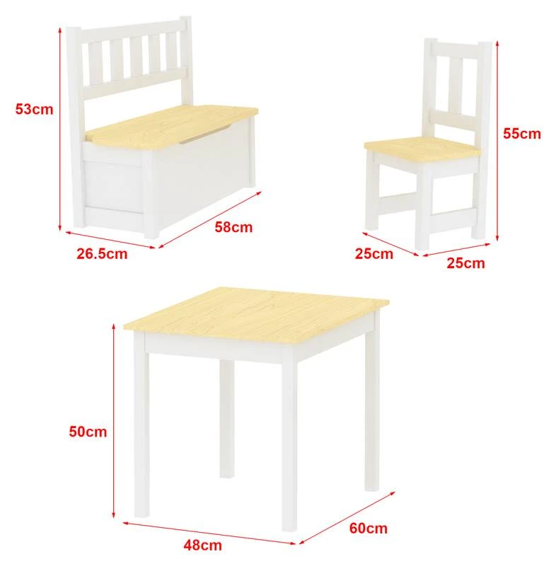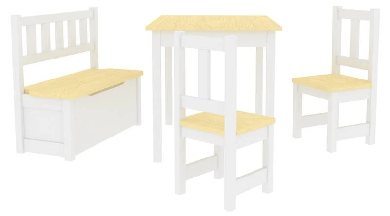 - Contenu de la livraison : 1 x table – 2 x chaises – 1 x banc rabattable – 1 x notice de montage