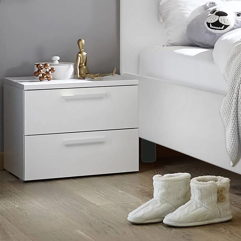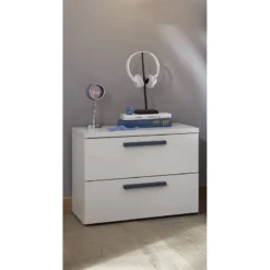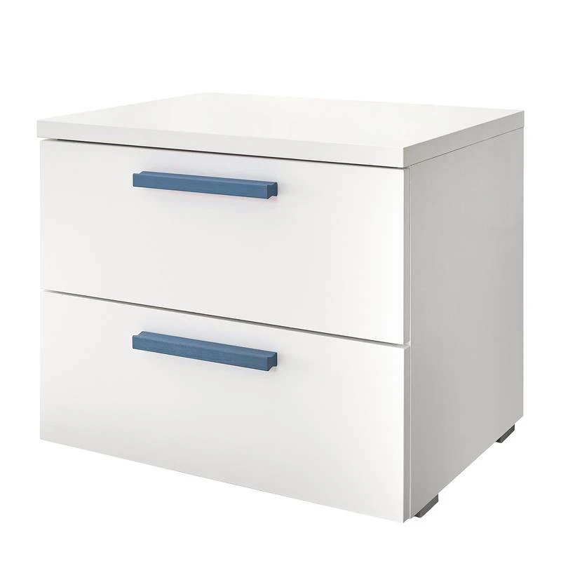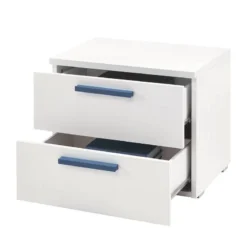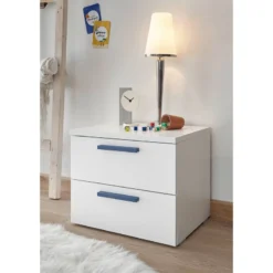 - Autres caractéristiques : Simple et indémodable en blanc ; poignées en bois coloré ; ferrures et coulisses de tiroirs en métal