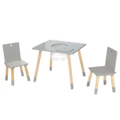 - Corps, plateau de table et pieds : gris